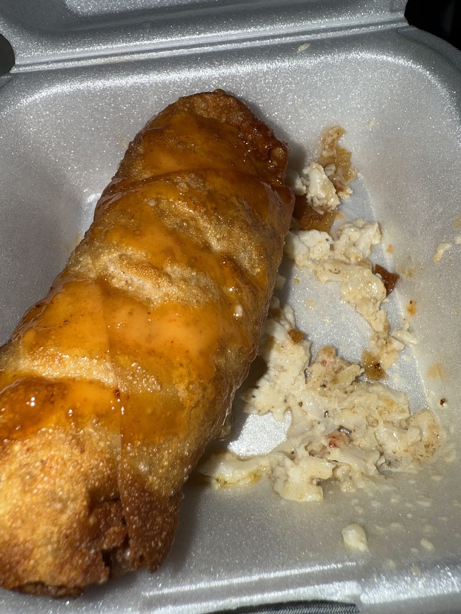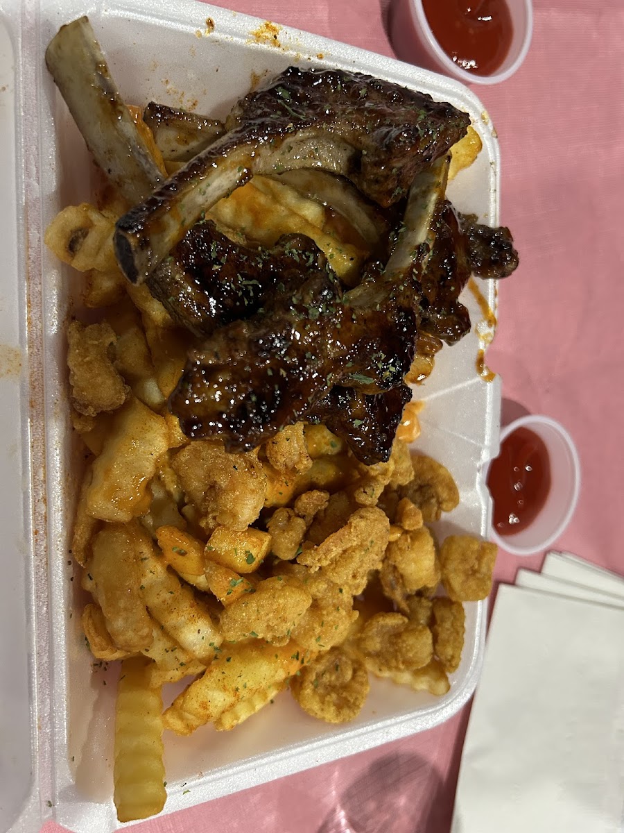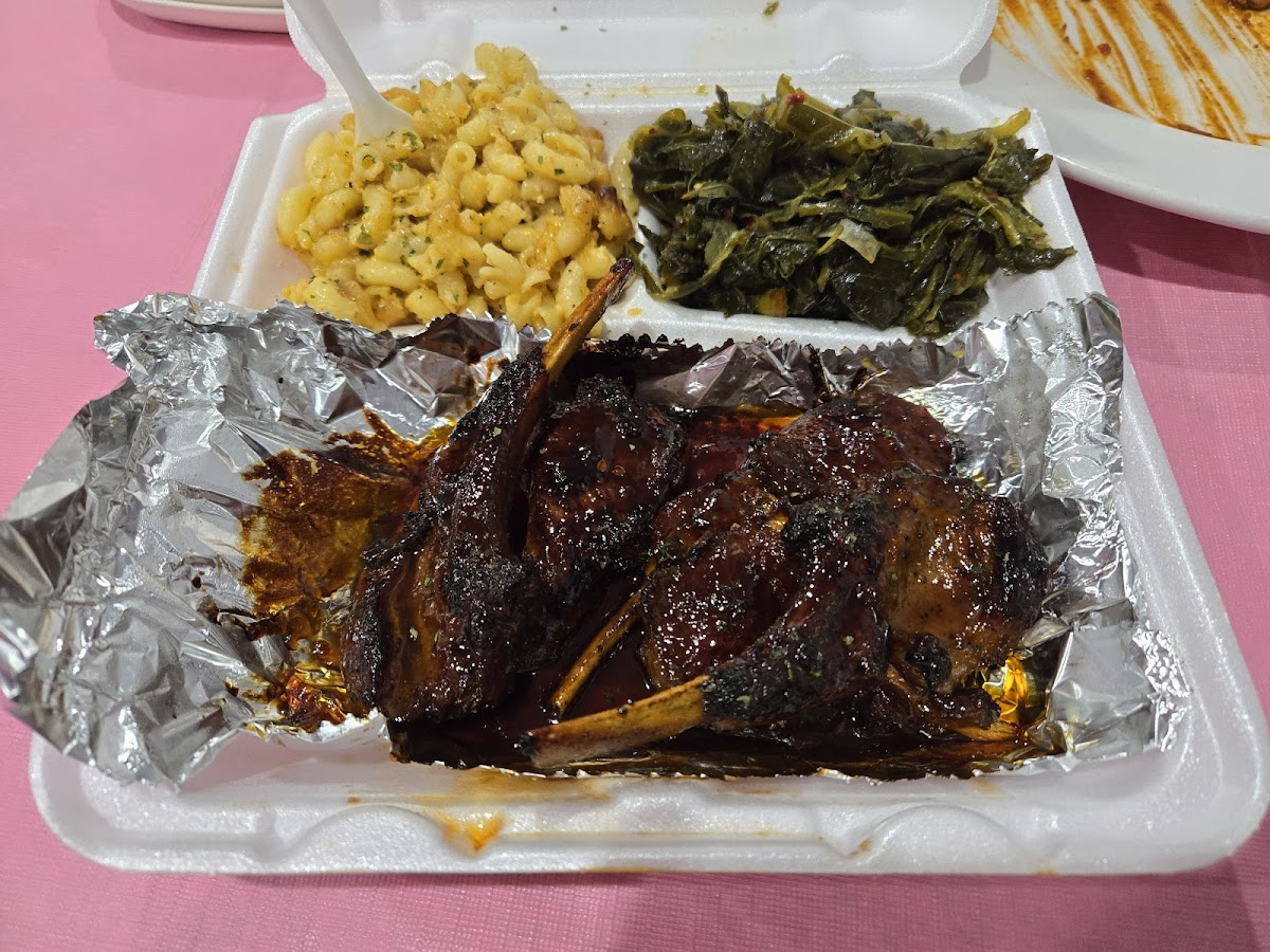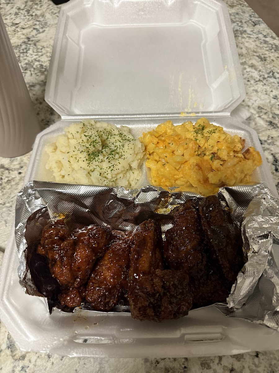 “ Heard about this place through a co worker. I ride past this place everyday on weekdays. Had to try it im a sucker for soul food. Upon arrival there were a few customers already waiting. The employees were a bit overwhelmed. I was told to hold on. Allot was going on. After a little wait, I was helped. We tried the oxtails over rice. The oxtails were seasoned and cooked perfectly. I just prefer more gravy. The rice was ok. Also we tried the crab egg rolls. This was the star item for me. Bursting with crab and full of flavor drizzled with some type of sweet sauce maybe honey. No fillers straight crab meat. This was the real deal. I recommend tens across the board. Very amazing . We also got a whitting platter with potato salad, Mac and cheese and sweet potato casserole. The fish was very good. The sweet potato casserole I was not a fan. They were sweet just not a fan of them mashed. Nor was I a fan of the cabbage. The cabbage just did not do it for me. The potato salad was good. Nice little sweetness and good. Overall the environment was nice they had music playing. The wait was well over a hour and half but it was worth it. We will return. Thank you ”