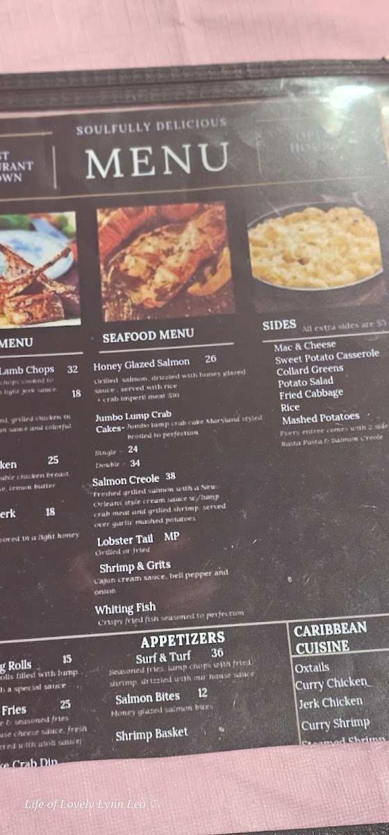The Caribbean menu shines with classics like Oxtails, Curry Chicken, and the spiced-up Jerk Chicken, along with the deliciously tender Curry Shrimp and Steamed Shrimp that embody the authentic flavors of the islands. Each dish offers a satisfying, soul-warming experience that embodies the essence of both Southern and Caribbean cuisine.